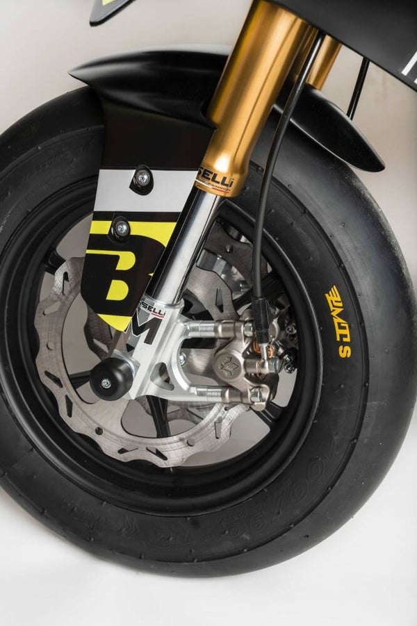 - Voorvork UPSD Bucci van Marselli Diameter 38 en een lengte van 641mm, 100mm veerweg.