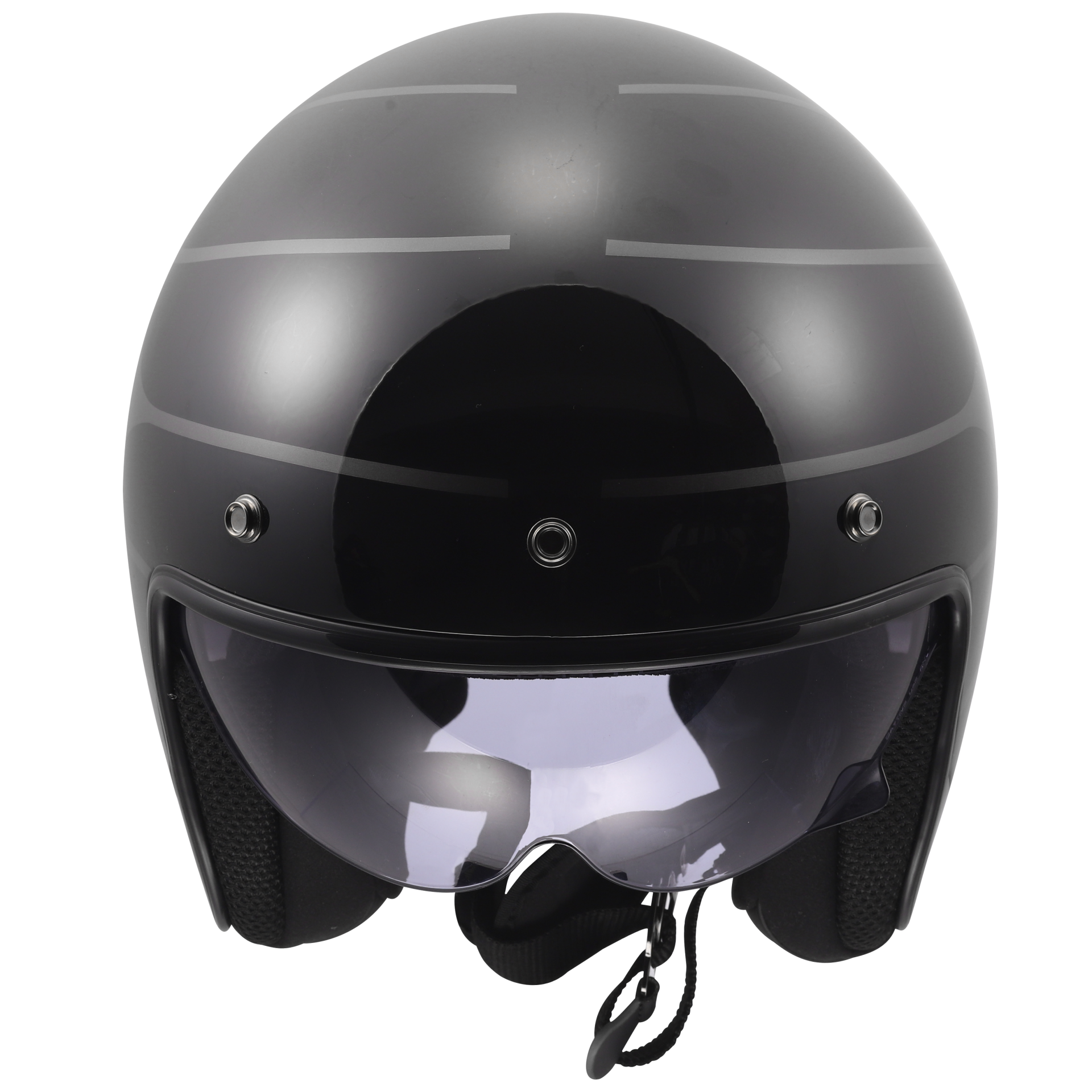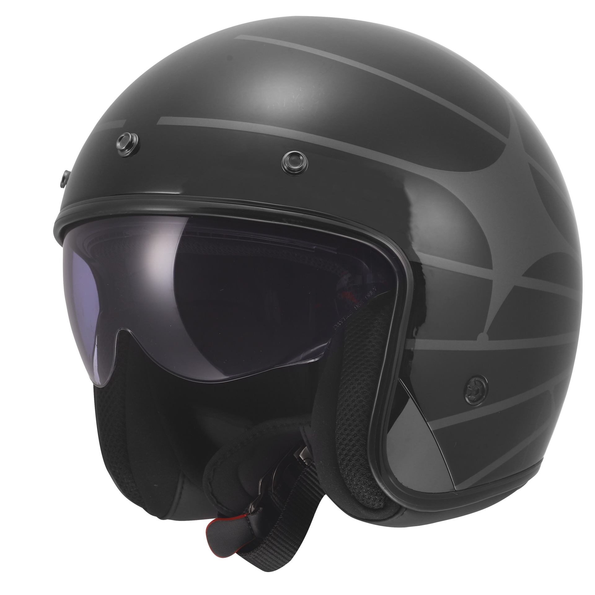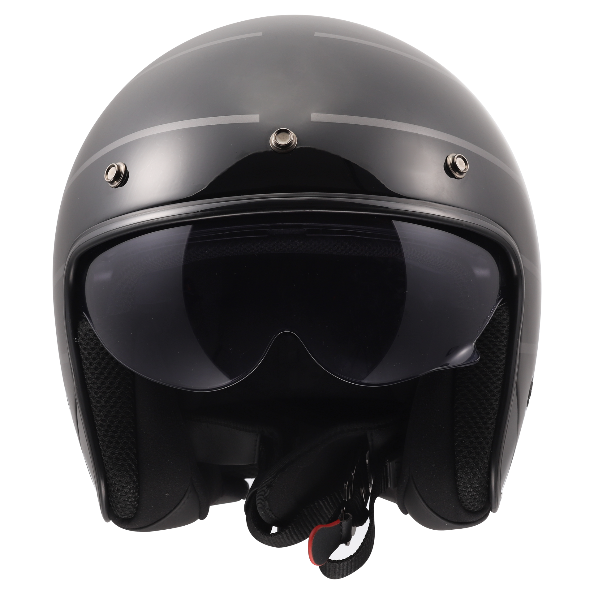 Deze helm is voorzien van drukknopen aan de bovenzijde waar je optioneel een peak op zou kunnen zetten om het plaatje helemaal af te maken. Daarnaast is deze helm voorzien van een dubbel-D sluiting en van een zonnevizier.